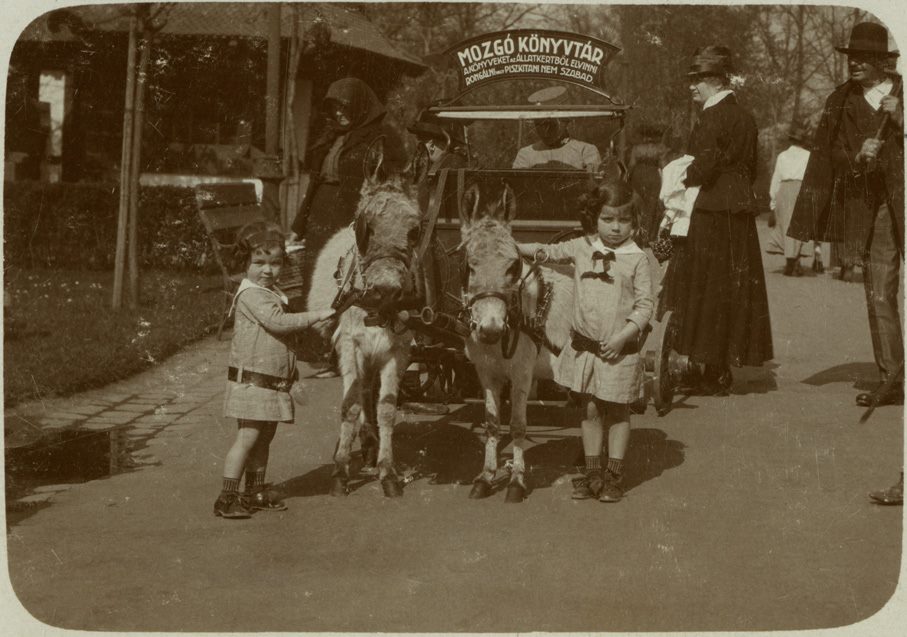 A Fővárosi Könyvtár állatkerti mozgókönyvtára. (Képeslap, 1910-es évek)