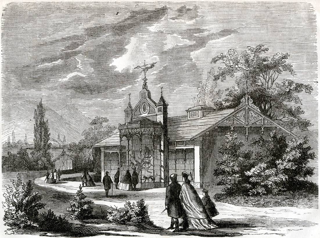 A majomház Rusz Károly fametszetén, 1866. (Megjelent A pesti Állatkert ismertetése egy szakértőtől c. kiadványban.)